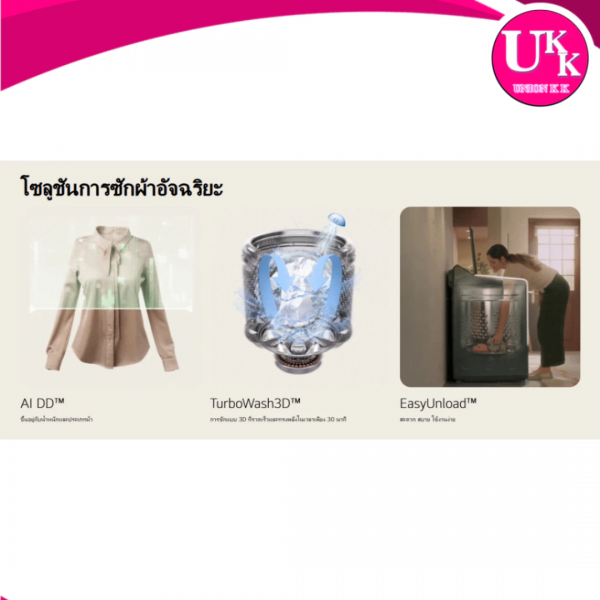เทคโนโลยี LG TurboWash3D™ มอบการทำความสะอาดที่ทรงพลังแต่อ่อนโยน ช่วยให้คุณซักผ้าได้มากขึ้นในเวลาที่น้อยลง