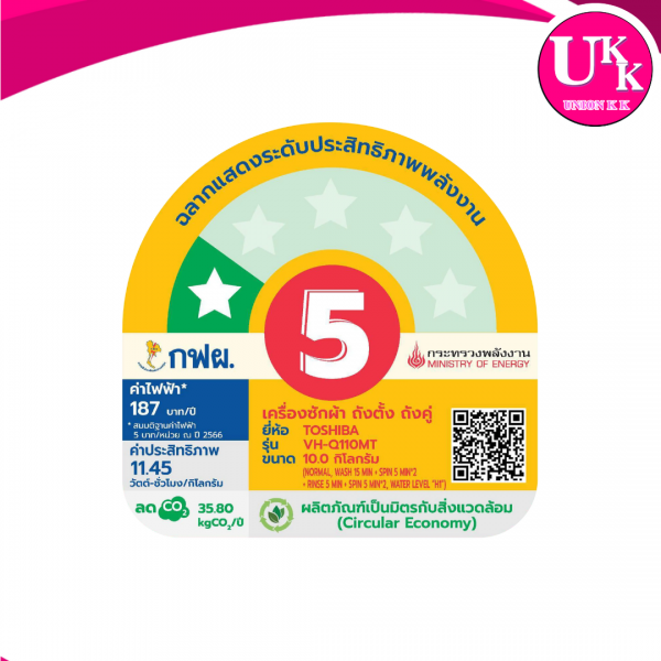 TOSHIBA เครื่องซักผ้า 2 ถัง รุ่น VH-Q110MT ขนาด 10 กก. สีขาว