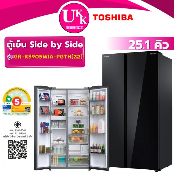 TOSHIBA ตู้เย็น Side by Side รุ่น GR-RS905WIA-PGTH(22) สีดำ 25.1 คิว