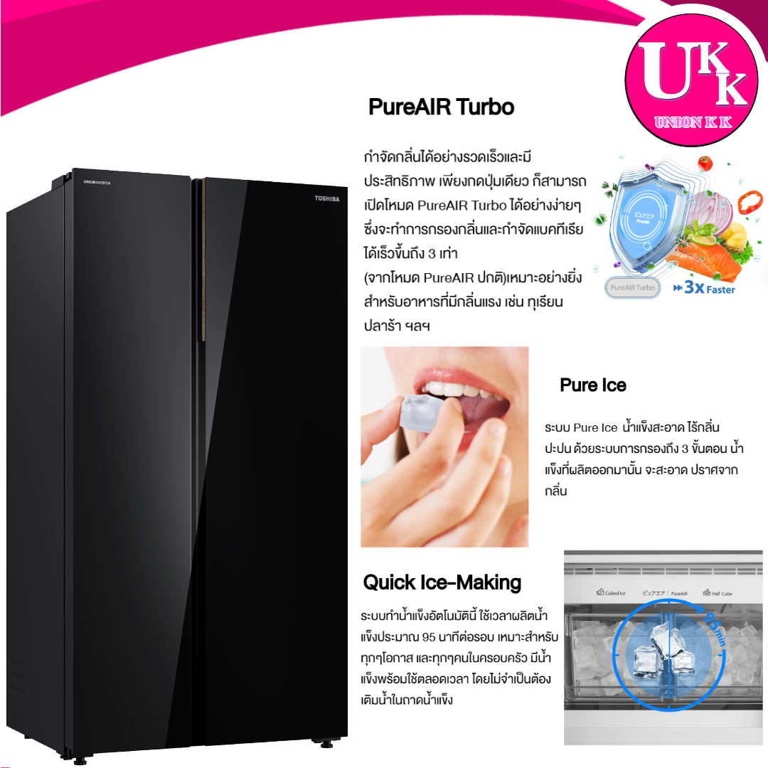 TOSHIBA ตู้เย็น Side by Side รุ่น GR-RS905WIA-PGTH(22) สีดำ 25.1 คิว