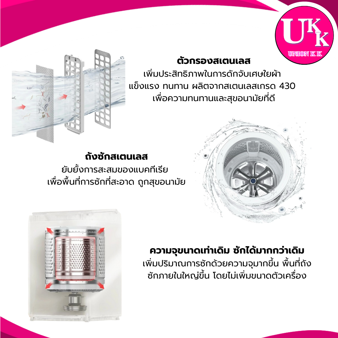 - ซักด้วยไอน้ำร้อนช่วยขจัดคราบต่างๆได้อย่างมีประสิทธิภาพ
