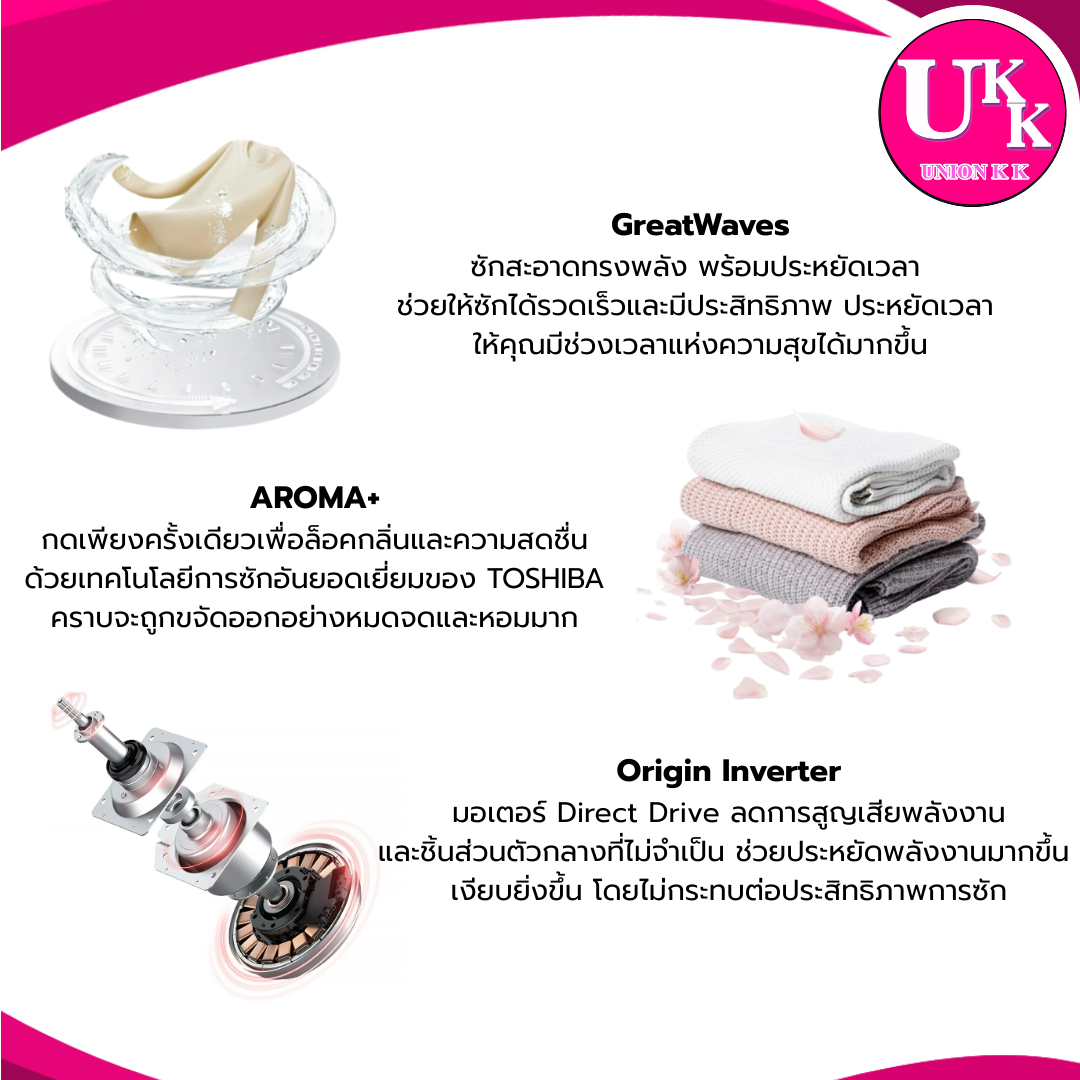 TOSHIBA เครื่องซักผ้าฝาบน รุ่น AW-T08DUH2000QT(MG) 19 กก. Direct Drive Inverter